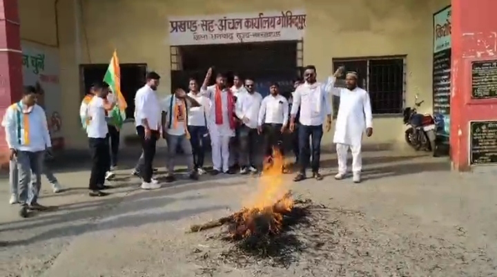 गोविंदपुर बीडीओ के दुर्व्यवहार से आक्रोशित युवा कांग्रेस ने किया पुतला दहन, बर्खास्तगी की मांग