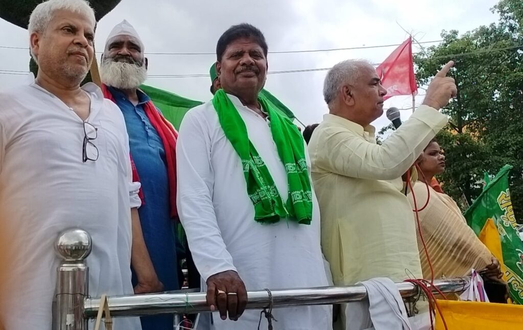 इंडिया गठबंधन द्वारा मतदाता पुनरीक्षण और ट्रेड यूनियन हड़ताल के समर्थन में बिहार बंद का बिक्रमगंज में मिलाजुला असर दिखा। गठबंधन के कार्यकर्त्ता शहर के तेंदुनी चौक जाम कर लगभग तीन घंटा आवागमन बाधित रखा। जबकि दुकानें और कार्यालय पूर्व की तरह खुले रहे। स्थिति को नियंत्रित करने के लिए पुलिस की तैनाती रही। तेंदुनी चौक पर एक सभा की गई। सभा को संबोधित करते हुए विधायक अरूण सिंह ने इस दौरान अपने संबोधन में केंद्र और राज्य सरकार को घेरा तथा बिहार चुनाव से पहले मतदाता पुनरीक्षण को घातक बताया। उन्होंने चिराग पासवान पर निशाना साधते हुए उनसे सावधान रहने की बात कही। उन्होंने कहा कि राजग नेता इस बार के चुनाव में अपनी हार को देखते हुए मतदाता पुनरीक्षण के बहाने इंडिया गठबंधन के मतदाताओं को कतरना चाहती है। उनके इस साजिश को पूरा नहीं होने दिया जाएगा। सभा को राजद नेता डॉ श्रीनिवास सिंह, अशोक सिंह यादव, डॉ. अरूण सिंह, रामचंद्र नट, कमलेश सिंह, कांग्रेस नेता बैद्यनाथ चौबे सहित कई लोगों ने संबोधित किया।