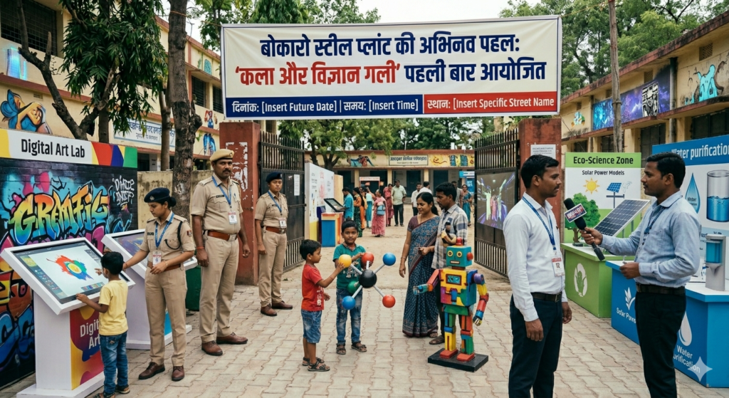 बोकारो इस्पात संयंत्र द्वारा शहरवासियों के लिए एक अभिनव एवं आकर्षक पहल के अंतर्गत 26 अप्रैल 2026 (रविवार) को एक दिवसीय “आर्ट एंड साइंस स्ट्रीट” का आयोजन किया जा रहा है। यह विशेष आयोजन सेक्टर-4 स्थित गांधी चौक से बोकारो मॉल जाने वाली मुख्य सड़क पर संध्या 6:00 बजे से रात्रि 9:00 बजे तक आयोजित होगा, जहाँ कला, शिल्प, विज्ञान एवं रचनात्मक अभिव्यक्तियों का अनूठा संगम देखने को मिलेगा।