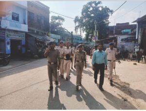 एसडीएम के नेतृत्व में पुलिस ने निकाला फ्लैग मार्च