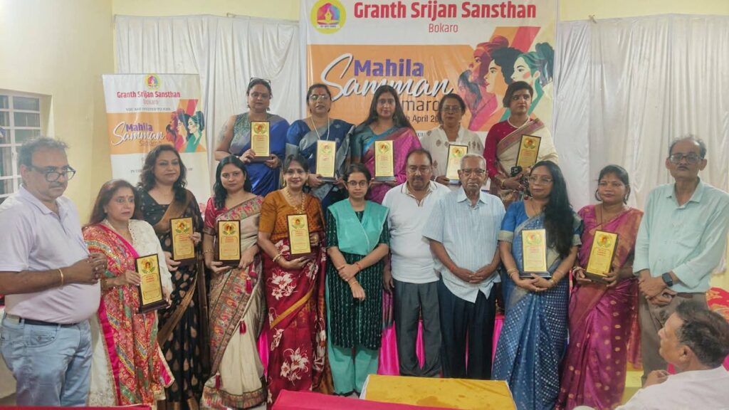 बोकारो । देर शाम ग्रंथ सृजन संस्थान ने दर्जनों विशिष्ट महिलाओं को महिला सम्मान समारोह आयोजित कर उनको सम्मानित किया। बियाडा ऑफिसर कॉलोनी स्थित कम्युनिटी हॉल में आयोजित कार्यक्रम समाज के विभिन्न क्षेत्रों में अपनी अमिट छाप छोड़ने वाली महिलाओं के प्रति कृतज्ञता और सम्मान व्यक्त करने का एक मंच बना। कार्यक्रम का आरंभ पूर्व डी आई जी जीतेंद्र कुमार सिंह, पूर्व रीजनल डायरेक्टर ( ए एच) एस बी जरूहर, बियाडा ऑफिसर्स सोसाइटी के सेक्रेटरी बी के सिंह , प्रोफेसर प्रियदर्शी जरूहार और रजत नाथ ने संयुक्त रूप से दीप प्रज्वलित कर किया।