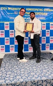 केंट फार्म द्वारा दुबई के हेरिटेज होटल में आयोजित सम्मान समारोह में शुक्रवार को बिक्रमगंज के होम्योपैथिक चिकित्सक डॉ. विकास कुमार, डॉ.सतीश कुमार, डॉ. अजय कुमार, डॉ. धर्मेंद्र सक्सेना, डॉ. हरेराम, डॉ. चंदन कुमार को चिकित्सा सेवा को लेकर केंट फार्मा के एमडी सोमदेव द्वारा सम्मानित किया गया। दुबई में 29 अगस्त 2025 शुक्रवार को होम्योपैथ चिकित्सा जगत के जाने माने देश–विदेश के कई नामचीन होम्योपैथ चिकित्सक ने मंच साझा किया। लोगों ने कहा कि आने वाले 20 साल बाद भारतीय चिकित्सा पद्धति के इतिहास में होम्योपैथी चिकित्सा का एक अलग मुकाम होगा। सेमिनार का यह आयोजन सेंट फार्मा प्राइवेट लिमिटेड की ओर से किया गया। जिसमें भारत के कई राज्यों के अलावा 25 से ज्यादा देशों से पहुंचे होम्योपैथिक चिकित्सकों को सम्मानित किया गया। इस सम्मान समारोह में रोहतास जिला के बिक्रमगंज से डॉ विकास कुमार, डॉ सतीश कुमार, डॉ. अजय कुमार, डॉ. धर्मेंद्र सक्सेना, डॉ. हरेराम, डॉ. चंदन कुमार को सम्मानित किया गया।