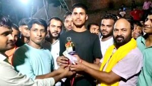 प्रखंड अंतर्गत नोनहर गांव में श्रीकृष्ण जन्माष्टमी के अवसर पर एजुकेशन प्वाइंट नोनहर के तत्वाधान में शनिवार को मटकी हांडी फोड़ का एकल प्रतियोगिता धूमधाम से आयोजित किया गया.करीब 12 फीट की ऊँचाई पर बांधी गई हांडी को फोड़ने के लिए 18 प्रतिभागियों ने बाजी लगाई. नियम था—एक मिनट की अवधि में आंखों पर पट्टी बाँधकर दो फीट लंबे डंडे से मटकी फोड़नी होगी. पहले राउंड में सभी प्रतिभागियों ने खूब जोर आज़माया, लेकिन कोई भी हांडी तक नहीं पहुँच पाया.इसके बाद प्रतियोगिता को और रोमांचक बनाते हुए आयोजकों ने दूसरी बार मौका दिया, मगर समय अवधि घटाकर केवल 30 सेकंड कर दी.इसी बीच चौथे स्थान पर उतरे सिंटू राय ने दर्शकों को सांस रोक देने वाला रोमांचक नजारा दिखाया. ताबड़तोड़ वार के साथ उन्होंने पलक झपकते ही हांडी फोड़ दी और प्रतियोगिता जीतकर तालियों की गड़गड़ाहट में नहाए.विजयी प्रतिभागी को आयोजक मंडल की ओर से एक ट्रॉफी और ₹200 नगद पुरस्कार प्रदान किया गया.साथ ही उद्घाटनकर्ता पत्रकार संतोष चंद्रकांत ने विजेता को अपने स्तर से ₹501 का नगद पुरस्कार दिया.वहीं न्यू फैक्टर क्लिनिक की ओर से अतिरिक्त ₹1000 की राशि भेंट की गई.कार्यक्रम में बतौर अतिथि पत्रकार चंद्रमोहन चौधरी, मोहित श्रीवास्तव, रोहित लाल, पिंकू तिवारी, मनोज गुप्ता सहित बड़ी संख्या में लोग मौजूद रहे. प्रतियोगिता में अपनी धारदार कमेंट्री से अमित तिवारी ने रोमांच का पारा और चढ़ा दिया.आयोजन समिति में रितेश श्रीवास्तव, गौतम तिवारी, मोहित गुप्ता, प्रकाश कुमार, ममित कुमार श्रीवास्तव, गोलू कुमार वर्मा, राजा बाबू, राहुल गोस्वामी, आयुष गोस्वामी, गुलशन मिश्रा, चंदन गुप्ता और सौरभ पटेल सक्रिय रूप से शामिल रहे और पूरे कार्यक्रम को सफल बनाया.गांव के लोगों ने इसे यादगार जन्माष्टमी बताया और अगले वर्ष इसे और भव्य रूप से आयोजित करने का संकल्प लिया.
