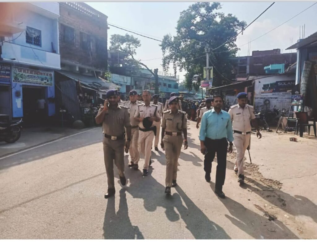 एस डी ओ के नेतृत्व में पुलिस ने किया फ्लैग मार्च ,लोगों से शांतिपूर्वक मतदान करने की अपील।